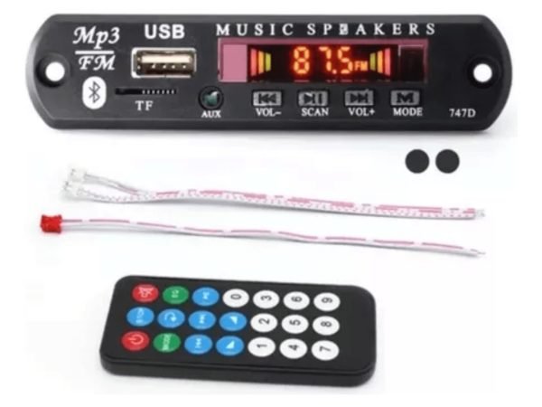 Módulo Mp3 Usb/sd/fm/aux C/ Bluetooth Con Control Remoto