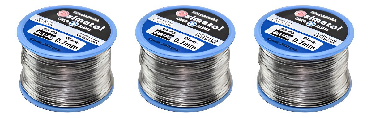 PACK DE 3 ROLLOS DE 100 GRAMOS DE ESTAÑO marca Eximetal de 0,7 mm de espesor.