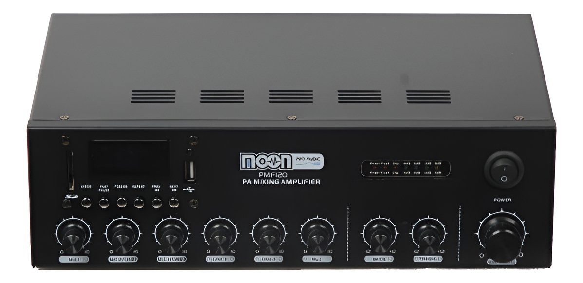 Mixer amplificado de 120w RMS que cuenta con: *Tres entradas de microfono con selector line/mic., una con coneccion xlr y dos con plug 6.5 con control de volumen.