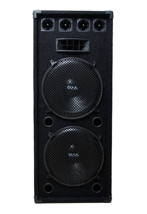 Bafle doble 15″ con rejas metalicas, bocina piezoelectrico y 4 tweeters piezoelectricos, tubos de sintonia , manijas y bornera dorada