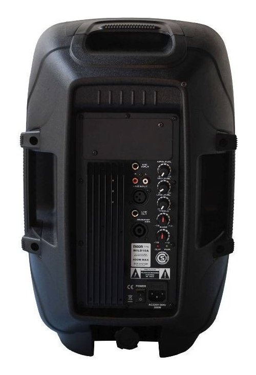 Bafle potenciado de 10″ de dos vías con woofer de 10″. 8 Ohms, bobina de 1,5″ y driver de titanio de 25mm. Cuenta con entradas de microfono (XLR/ Jack 6,5), salida (JACK 6,5) y entrada (XLR/ RCA) de linea, control de tono y salida Speakon