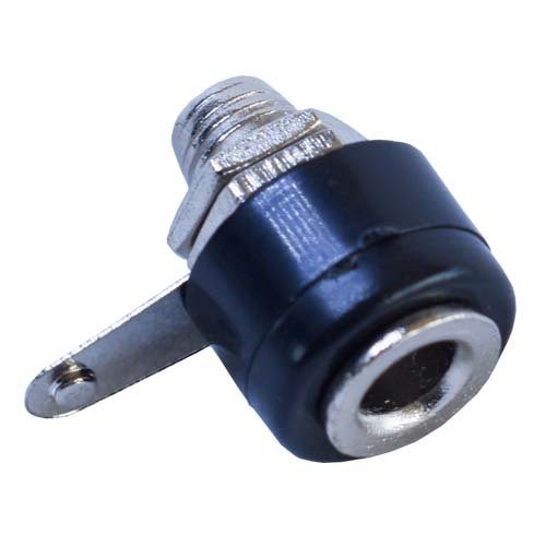 Conector tipo banana para montaje en chasis, ideal para realizar conexiones firmes y seguras en equipos electrónicos, fuentes de alimentación, amplificadores, instrumentos de medición y bancos de prueba.