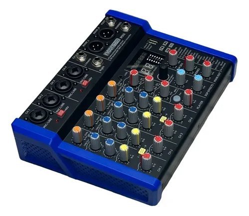 Mixer de seis canales con 99 efectos DSP 24 BIT 48KHZ, reproductor MP3, wireless, grabacion, interfase de audio USB, salida de master XLR y salida de retorno plug 6,5. Cuatro entradas de microfono (XLR/TRS) con EQ 3 bandas, phanton, FX y PAN mas dos entradas estereo (PLUG 6,5MM+RCA+TRS 3,5). Alimentacion via USB tipo C 5V2A (INCLUYE CABLE ).Respuesta de frecuencia: 20Hz-20KHz +/-1dB.