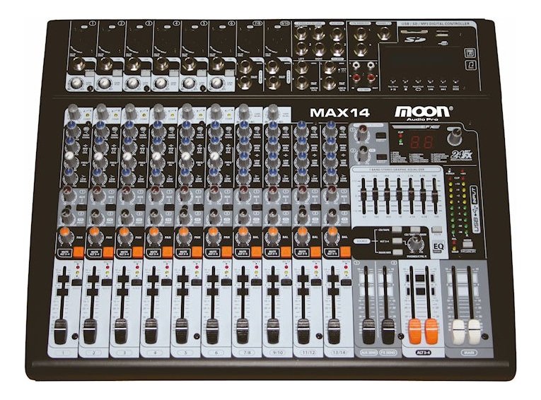 CONSOLA MIXER POTENCIADA MOON MAX14 14 CANALES USB 800W