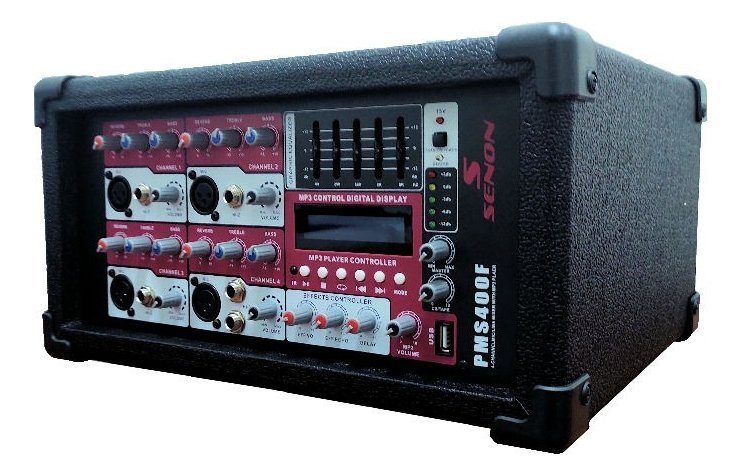 El mixer Senon PMS400F es una consola versátil y funcional, ideal para DJs, músicos y eventos en vivo. Su diseño compacto y robusto ofrece una excelente calidad de sonido, múltiples entradas y una interfaz práctica que facilita el control de tus mezclas.