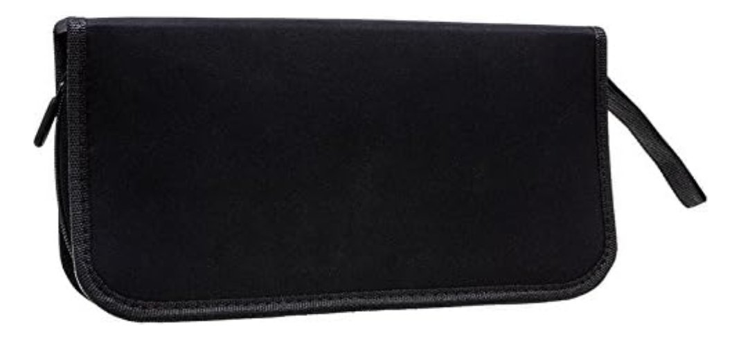 Estuche negro con cierre y compartimentos individuales para mantener todo organizado