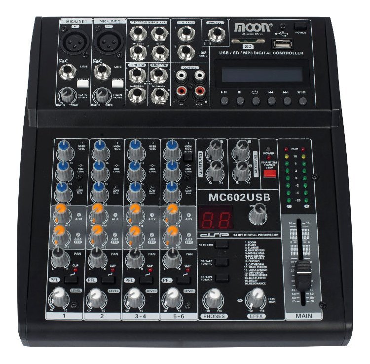 – Mixer de seis canales: 2 canales Mono/4 canales Estéreo