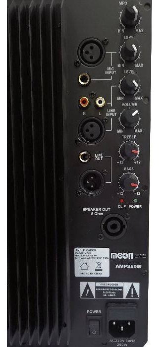 y 500Watts RMS en 4ohms, conectando 2 woofers o un bafle pasivo.
