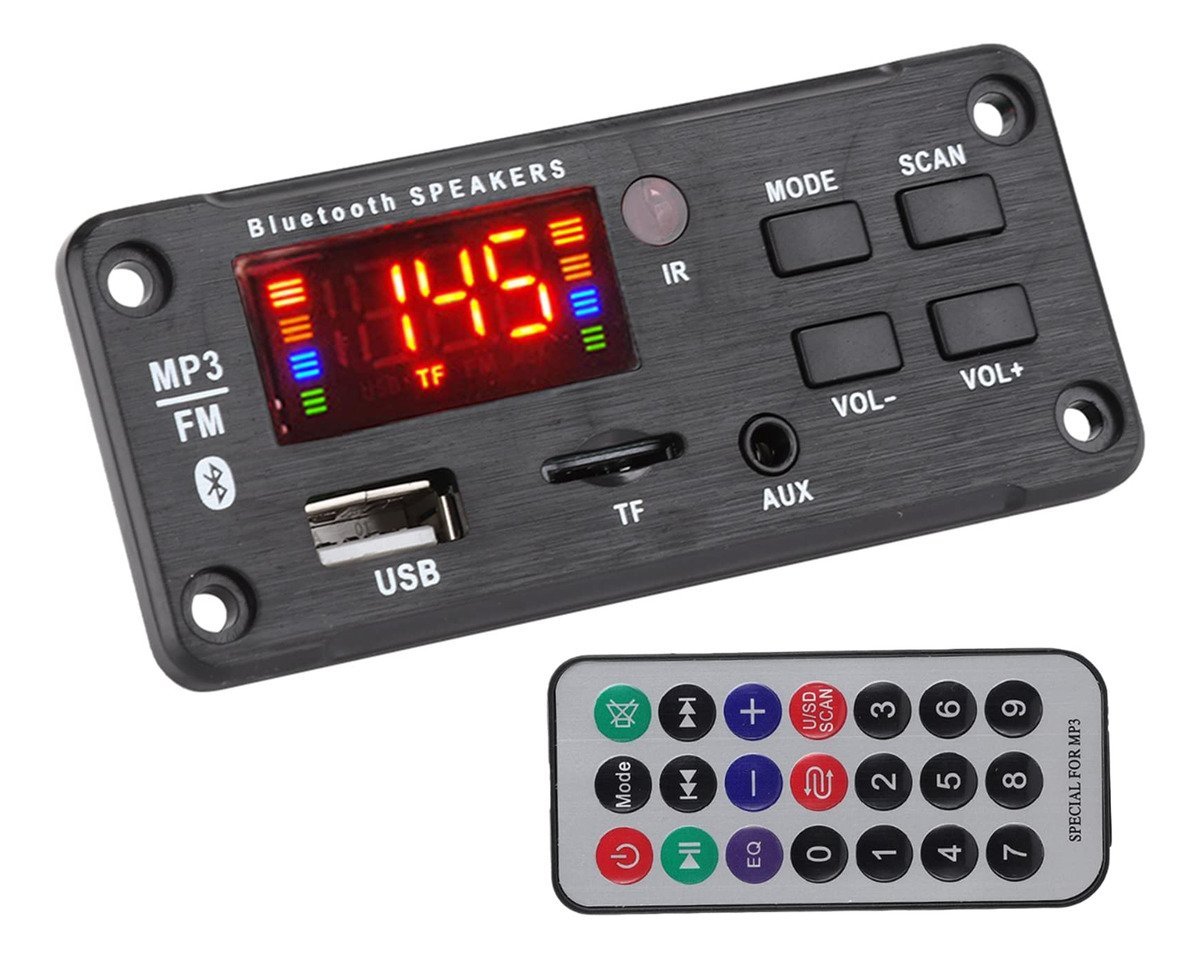 Este dispositivo combina funciones de decodificación MP3, Bluetooth, radio FM y Micrófono, ofreciendo una experiencia de audio excepcional en un formato compacto y fácil de usar. Su diseño intuitivo permite cambiar entre modos de reproducción y ajustar el volumen o seleccionar canciones con facilidad, ya sea mediante el panel de control o el mando a distancia incluido.