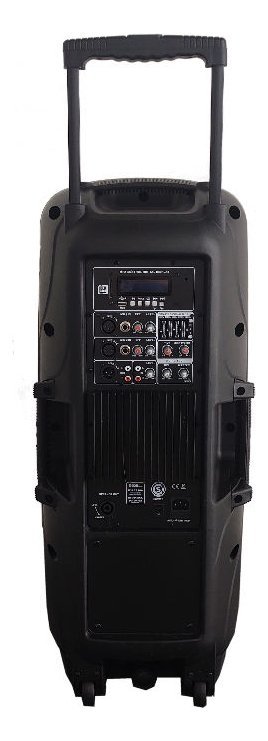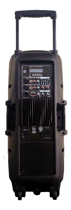 Inyectado en color negro con dos woofer de 10″, bobina de 2″ de 8 Ohm y driver de titanio 34mm, dos entradas de microfono xlr balanceadas y jack 6,5 mono no balanceadas con control de volumen independiente y efecto, equalizador grafico de 5 bandas, entrada de linea rca, salida de linea rca y xlr, ruedas, manija superior y manijas laterales. Potencia 200 Watts rms 1200 Watts PMPO.