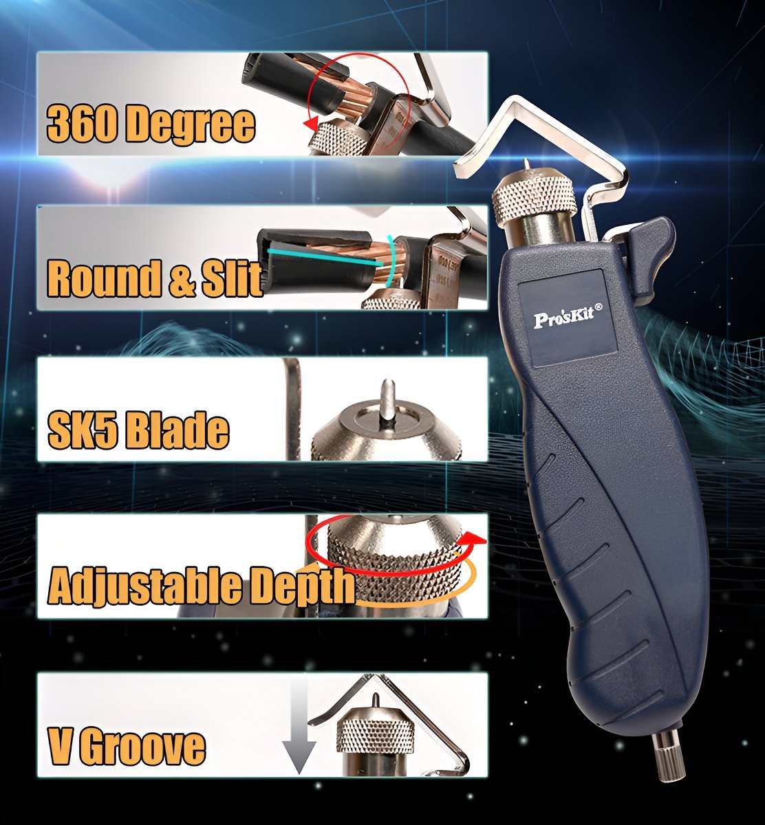 Pelacables Rotativo Y Longitudinal Proskit 4.5 A 2