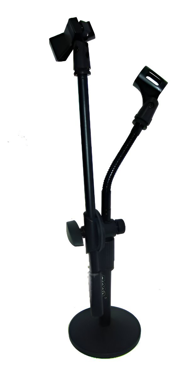 Pie de micrófono doble de mesa.