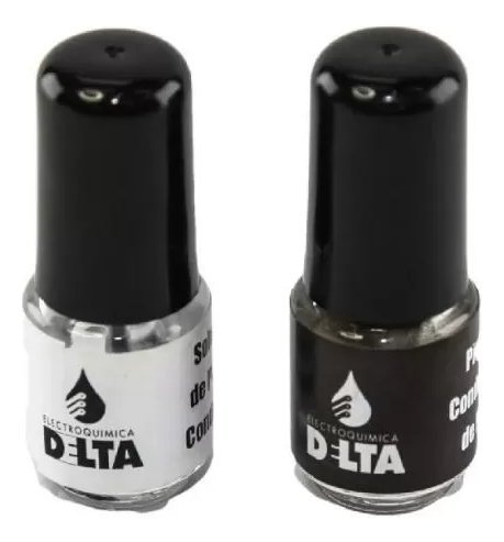 Pintura conductora, a base de plata, para la reparación de trazas de circuitos impresos, cables flexibles y circuitos impresos. Consiste en una dispersión de plata en escamas, grado 750, asentado en un sustrato sintético adhesivo de gran flexibilidad. El vehiculo para su aplicacion es un solvente de rápida evaporación, que evita el resquebrajamiento de la pintura luego de su colocación. Adecuada para aplicaciones sobre vidrio, cerámicas, cables planos, placas de impresos de epoxi y fenólicas, plásticos en general, gomas, etc. Recomendada para telefonía y alarmas, controles remoto, audio, video y TV. También para teclados, trazas de impresos, lunetas térmicas, instrumental y comunicaciones.