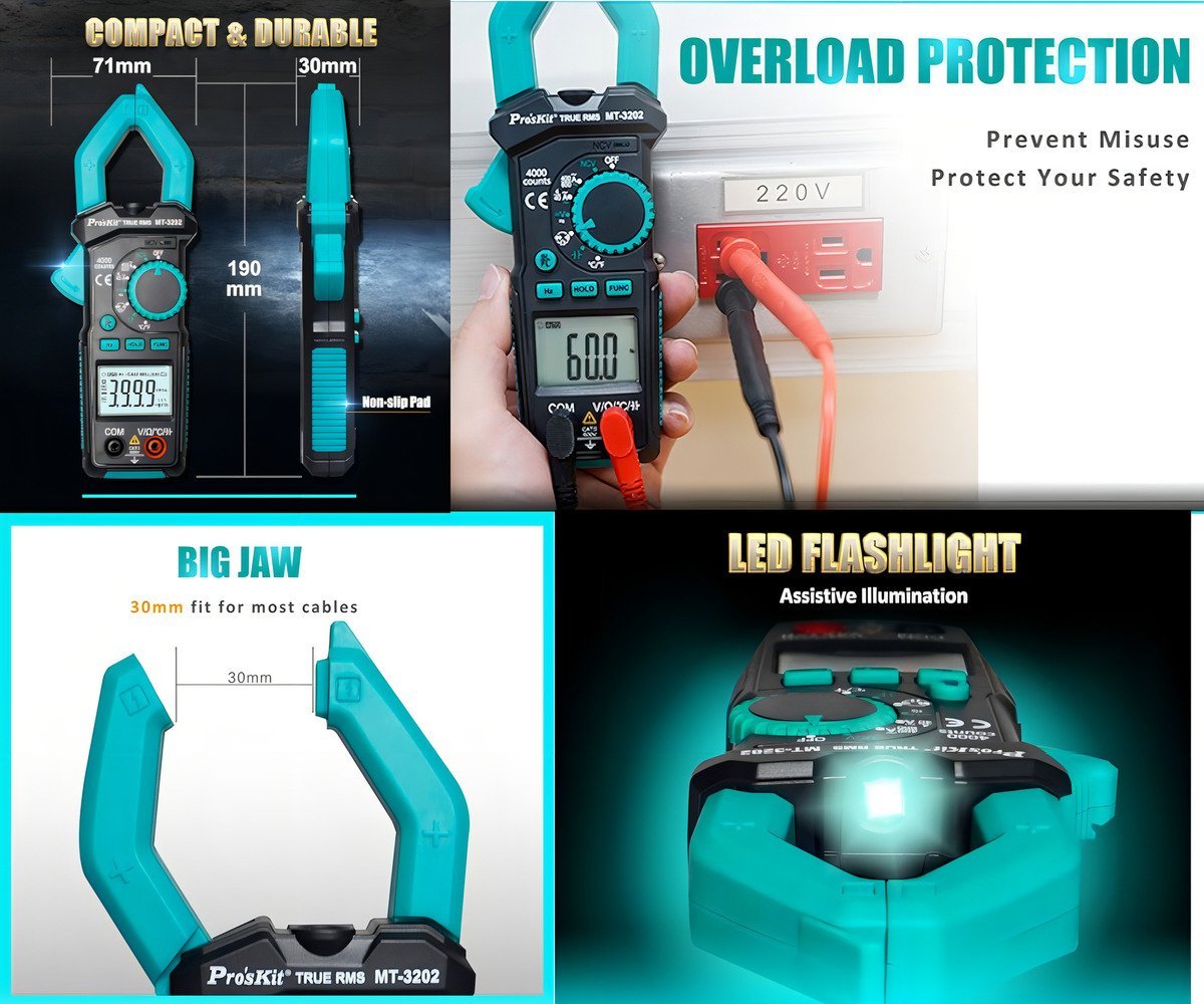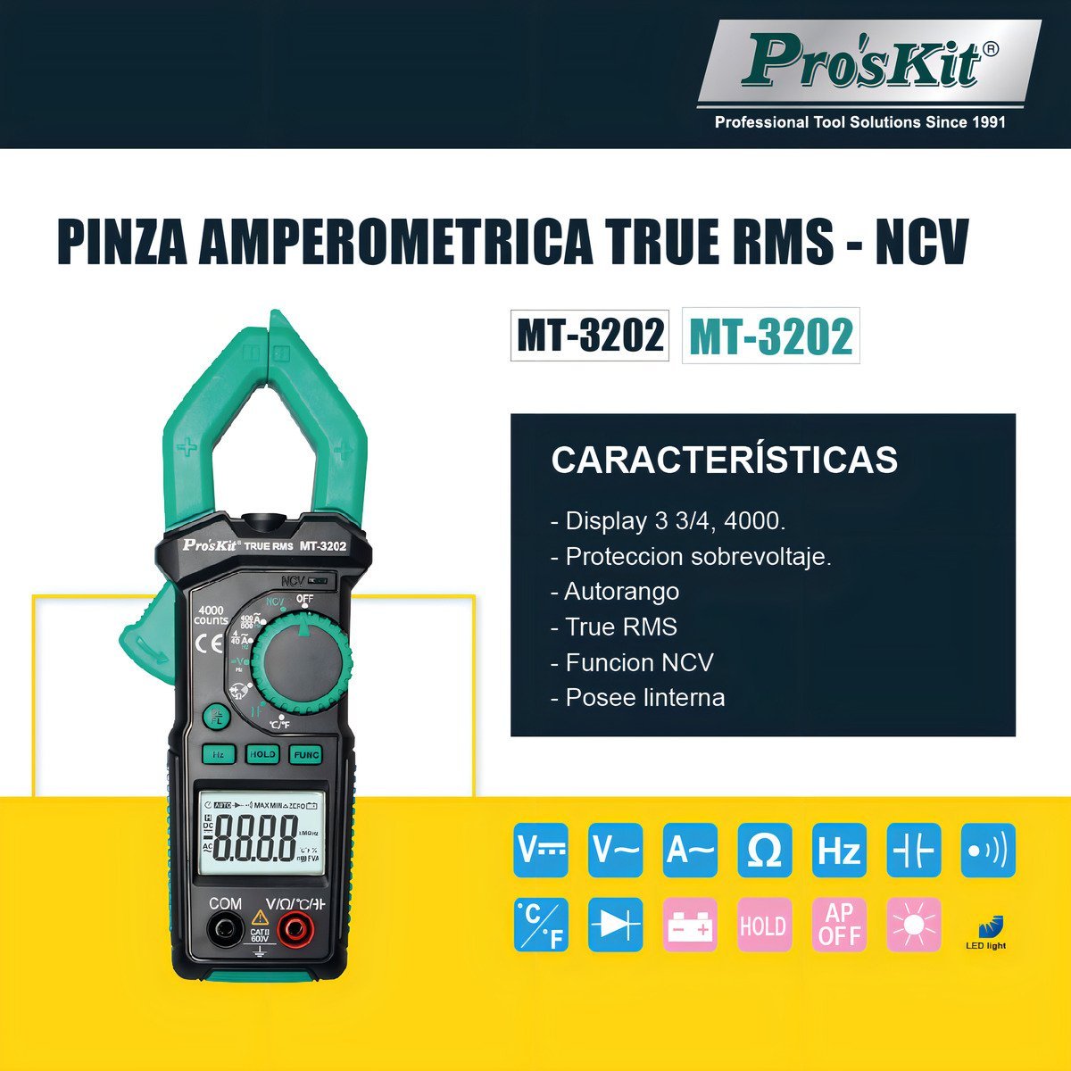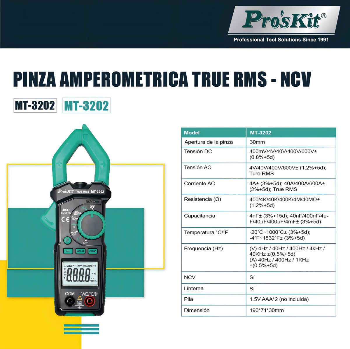 Pinza Amperometrica Capacimetro True Rms Temp Pros