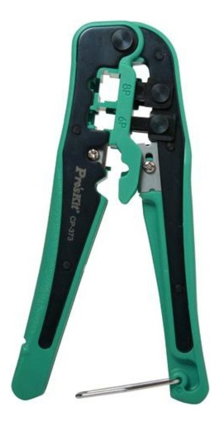 La Pinza Crimpeadora Pro’sKit CP-373 es una herramienta esencial para cualquier profesional o entusiasta de las telecomunicaciones. Diseñada para trabajar con conectores RJ45, RJ22, RJ12 y RJ11, esta pinza de alta calidad garantiza un crimpado preciso y seguro, ideal para la creación de cables de red personalizados.