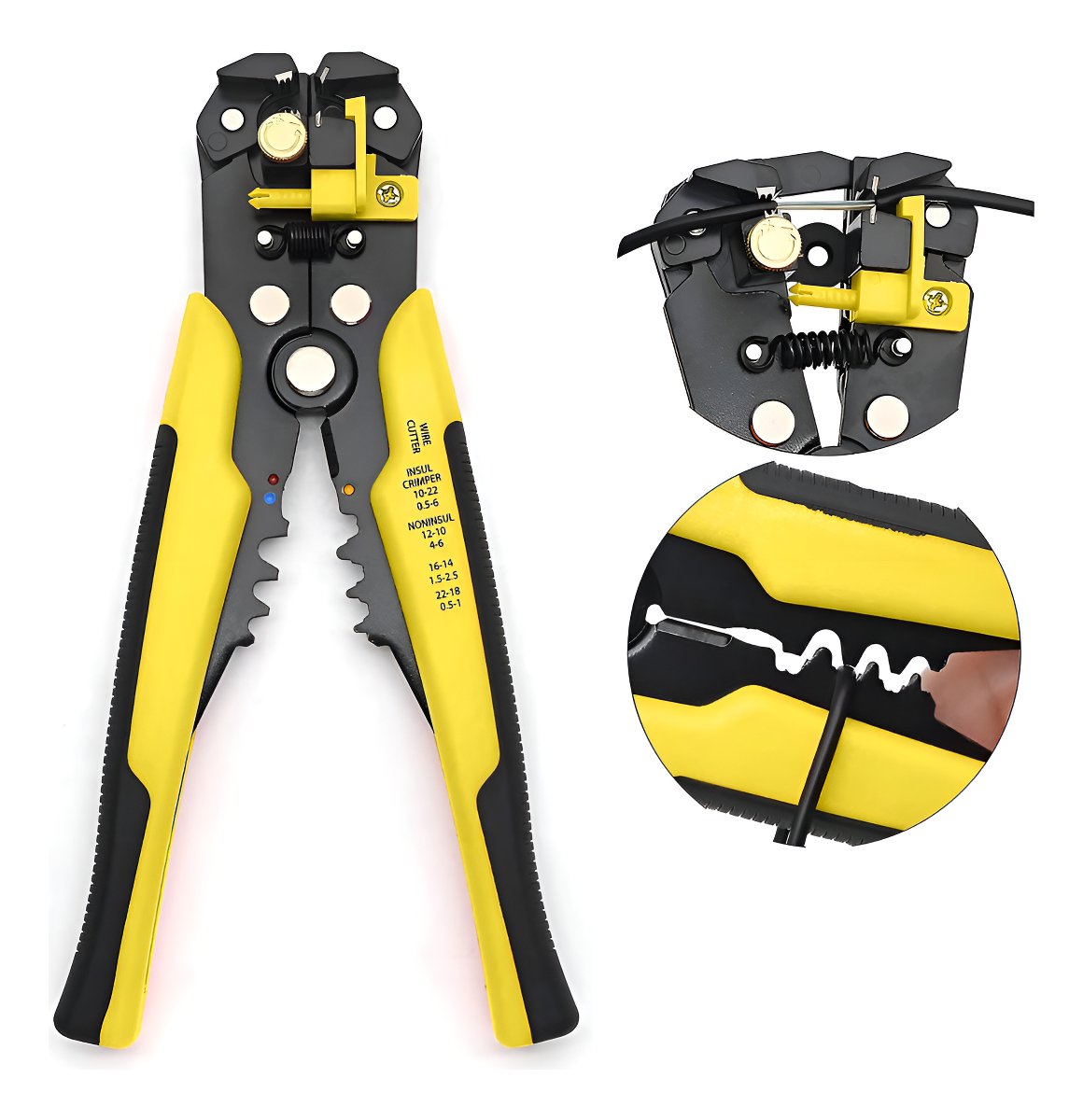 Herramienta profesional diseñada para pelar, cortar y engarzar cables de forma rápida, segura y precisa. Ideal para trabajos de electricidad, electrónica y cableado en general.