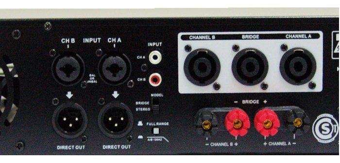 Potencia de dos canales puenteable. Sistema de ventilación por doble fan y disipador de calor. De 220v. Indicador de nivel de entrada 2 x 5 led. Indicador de encendido, señal, sobrecarga y protección. Relación señal / ruido: >102dB.