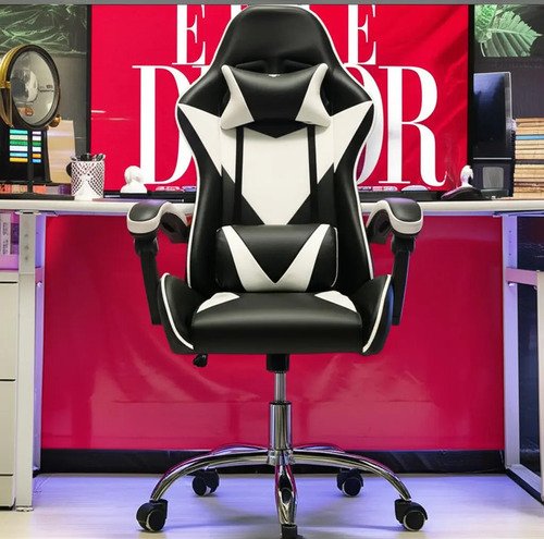 Silla Gamer Ergonómica Reclinable Senon Bgs01 Negro Blanco Espuma
